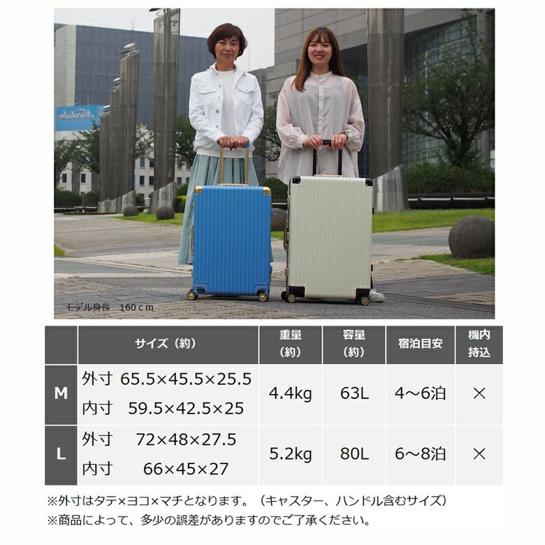 22色から選べるトランクキャリー 好きな色が必ず見つかる! [安心の3年保証] スーツケース キャリーケース キャリーバッグ おしゃれ 修学旅行 大容量 軽量 トランク TSAロック (71-55099・100) [Lサイズ]