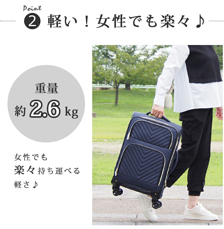 女性におすすめ 女性用のソフトキャリーケース [安心の3年保証付き] ソフトキャリー ソフトキャリーケース スーツケース 超軽量 おしゃれ 女性 レディース (71-43009)